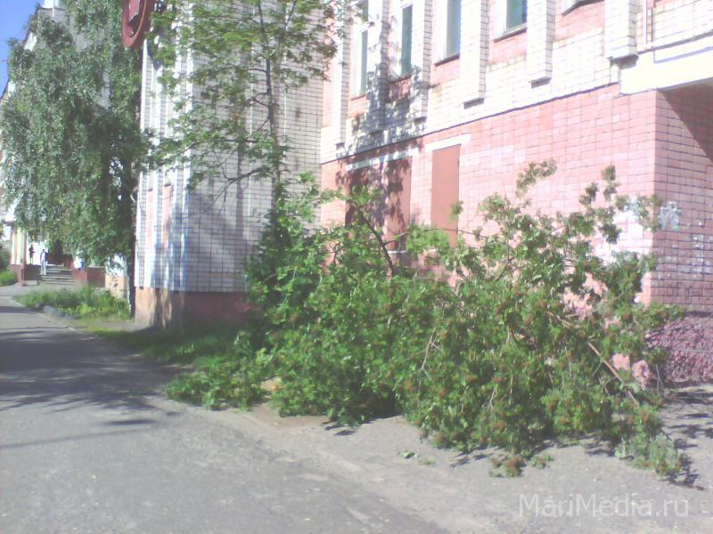 Накануне действительно на город обрушился шквалистый ветер 13-18 м/с и ливень (http://www.12.mchs.gov.ru/news/detail.php?news=15709 ), не обошлось без грозы и града. В считанные минуты вода поднялась до критической отметки, и встали троллейбусы. Напомним, технические характеристики транспортных средств не позволяют им передвигаться по воде, если её уровень превышает 160 мм. Не выдерживали порывов ветра не только высохшие деревья, но и молодые. Ливень вымыл цветы, впервые высаженные в этом году в декорированных корзинах на придорожных городских клумбах (кольцо у Витаминного завода). Сегодня специалисты МУП «Город» были вынуждены отправиться восстанавливать цветочные композиции. По заявкам домоуправлений будут вывозиться сломанные деревья.