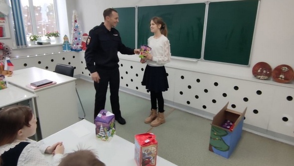 Полицейские подарили ребятам сладкие подарки и поздравили их с наступающим Новым годом, пожелав удачи, радости и исполнения желаний.