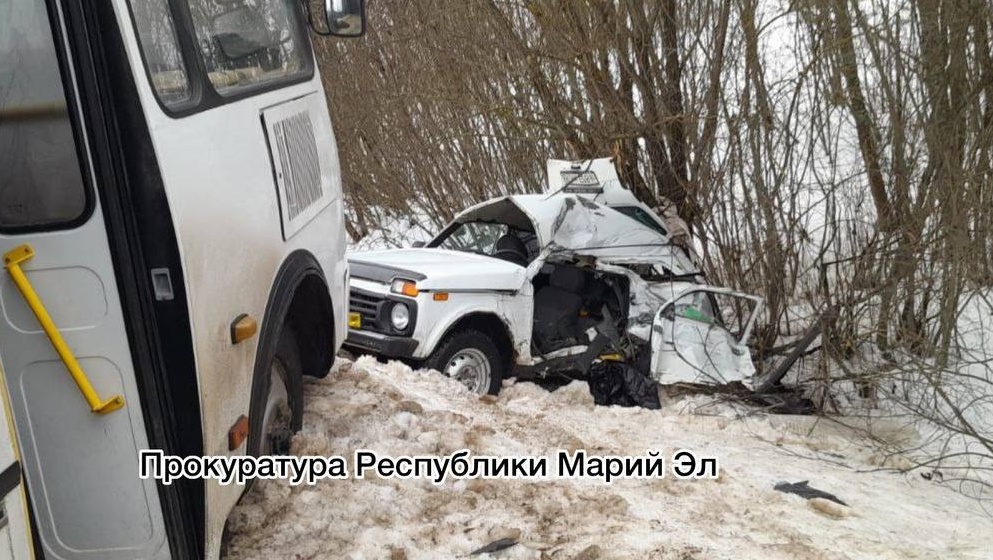 В Куженерском районе сегодня утром автобус столкнулся с «Нивой»
