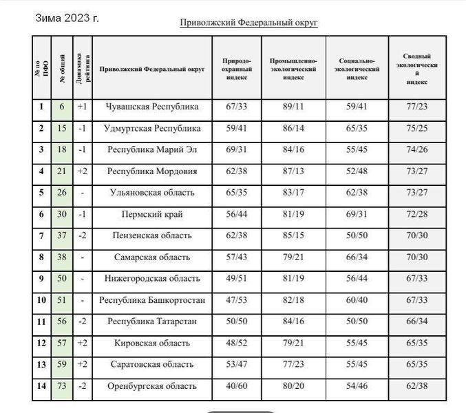 Кроме того, Марий Эл держит свои позиции и в экологическом рейтинге регионов РФ, стабильно занимая 17-18-ю строчку из 85, отмечают в региональном Минприроды. Показатели высчитываются с учётом трёх индексов: