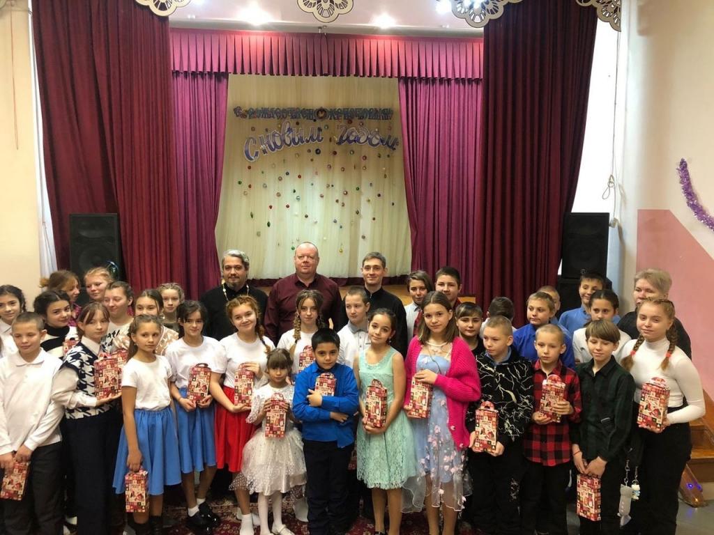 Руководство, педагоги и дети радостно встретили отца Александра и показали праздничный концерт. Батюшка в ответ поблагодарил за доставленную радость и вручил всем сладкие подарки.