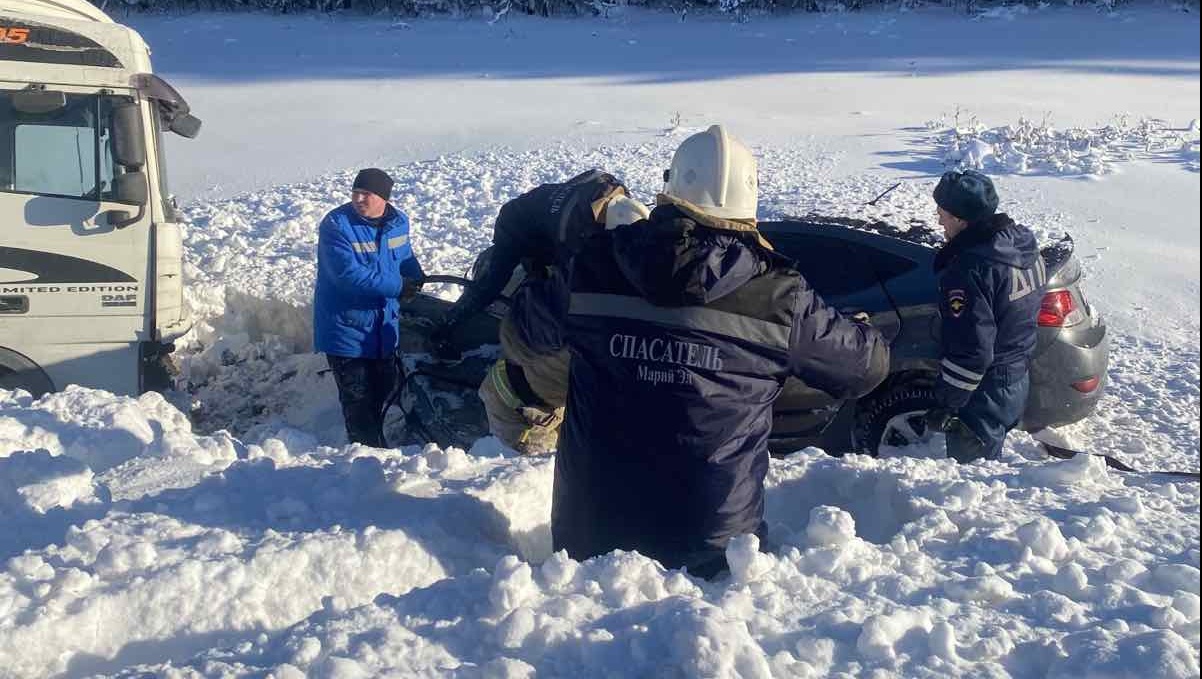 В смертельном ДТП в Медведевском районе из «Рено» деблокировали тело погибшей