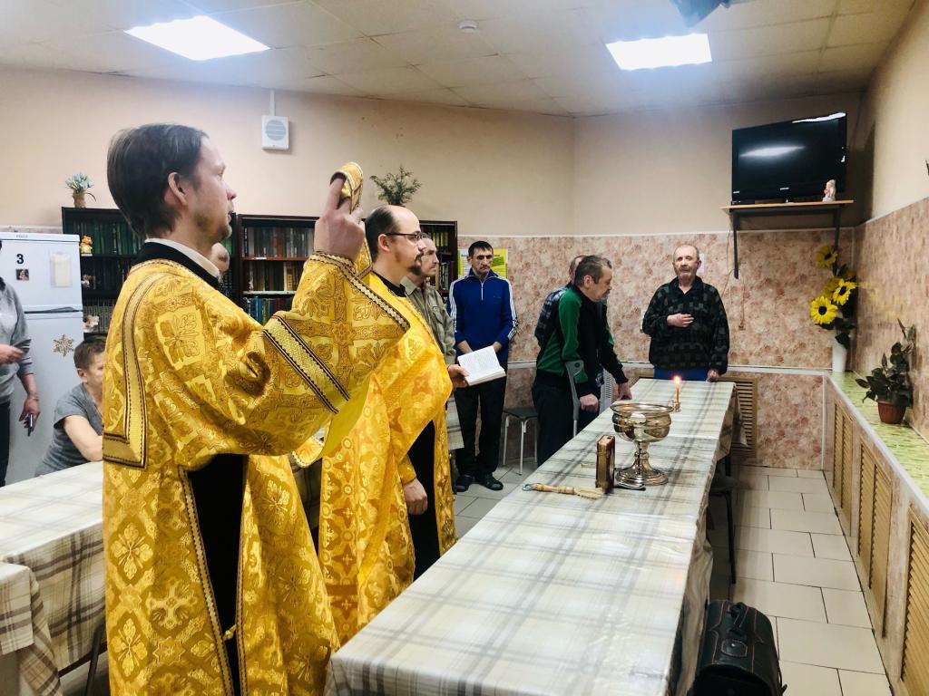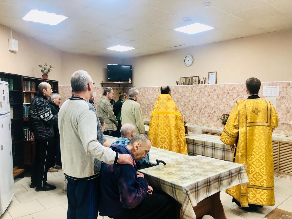 Отец Алексий совершил водосвятный молебен и освятил все комнаты учреждения. Каждому постояльцу вручили подарки и сладости.