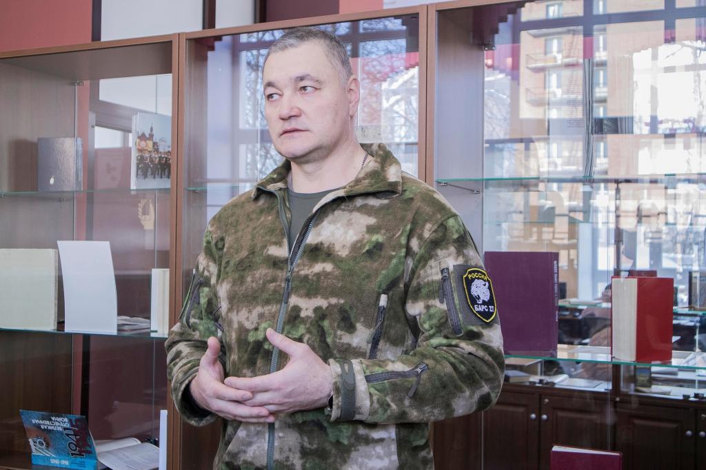 В рамках второго дня Международного форума студенты МарГУ пообщались с героем-добровольцем СВО Алексеем Вальманом (Батальон «Факел») в формате «Диалога на равных».