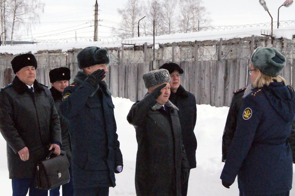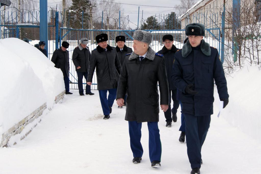 В плановом выезде в режимное учрежедение приняли участие старший помощник прокурора Марий Эл по надзору за соблюдением законов при исполнении уголовных наказаний Сергей Завойских, руководитель специальной прокуратуры по надзору Александр Ямиданов, а также уполномоченный по правам человека в регионе Фанис Мухаметгалиев.