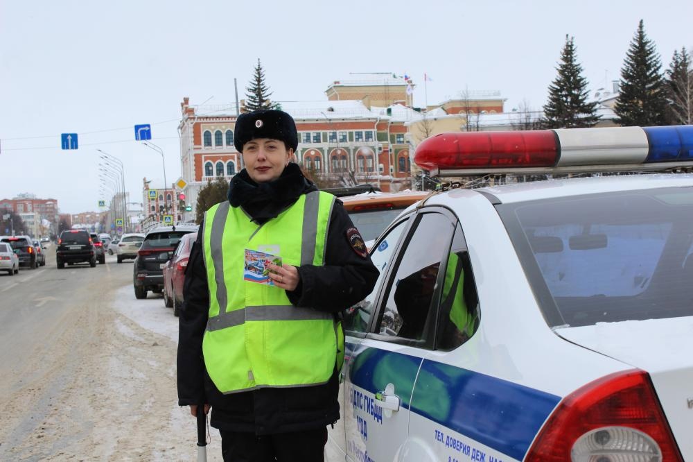 В преддверии Дня защитника Отечества в столице республики сотрудницы Госавтоинспекции поздравляют автомобилистов с наступающим праздником.