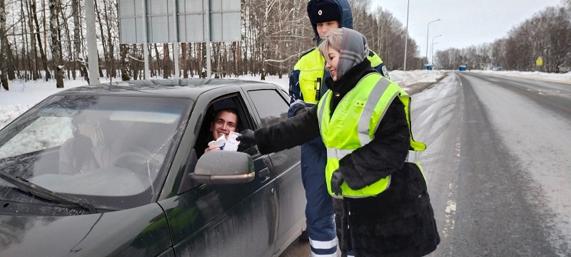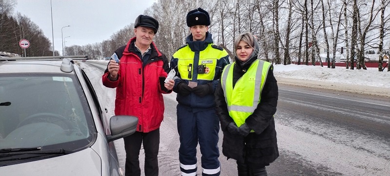 В Горномарийском районе автоинспекторы с представителями администрации района в преддверии Дня защитника Отечества провели акцию «Подарок для защитника». К автоинспекторам присоединилась представитель главы Горномарийского муниципального района Татьяна Таюкова.