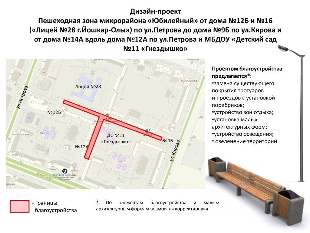 • пешеходную зону в микрорайоне Юбилейный (около лицея № 28),