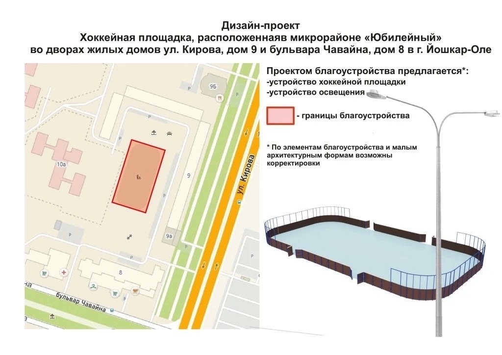 • хоккейную площадку во дворе Кирова, 9.
