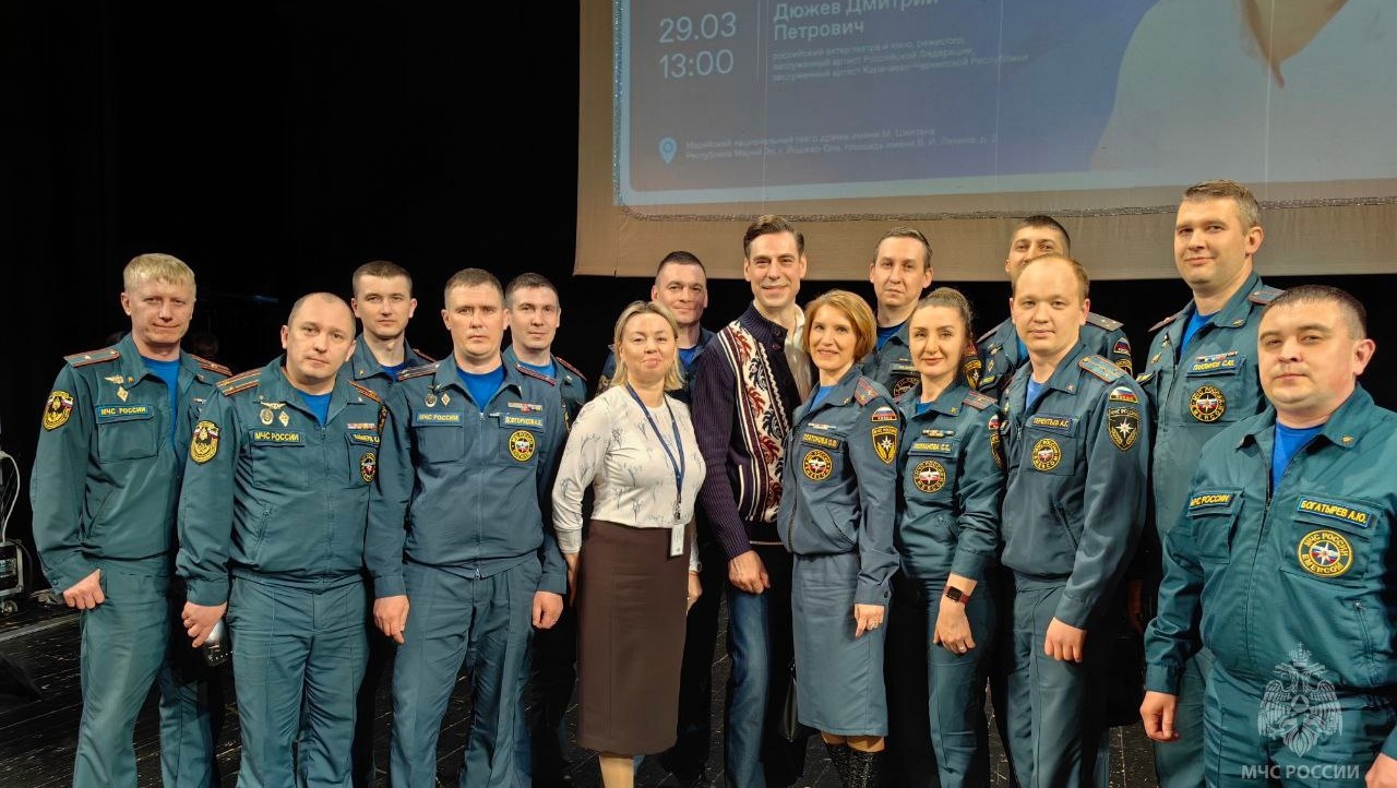 Среди зрителей были и сотрудники Главного Управления МЧС России по Марий Эл, которые после мероприятия сделали совместное фото с Дмитрием Дюжевым.