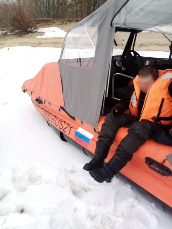 К этому времени на аэролодке прибыли также спасатели Чувашии. На этом транспортном средстве мужчину транспортировали на берег и передали медикам.