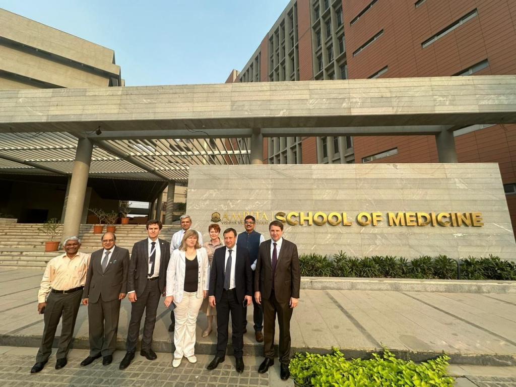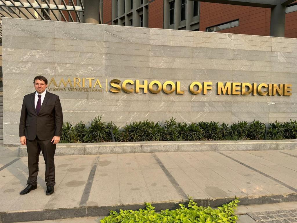 Ректор МарГУ вместе с заместителем руководителя Федерального агентства по делам Содружества Независимых Государств, соотечественников, проживающих за рубежом, и по международному гуманитарному сотрудничеству (Россотрудничество) Павлом Шевцовым, с Заместителем Министра здравоохранения РФ Татьяной Семёновой и другими коллегами в рамках Российско-Индийского образовательного саммита посетили The Amrita School of Medicine, имеющую аккредитацию Национальной медицинской комиссии и Всемирной организации здравоохранения, и встретились с её директором Санджибом Сингхом. Университету, активно занимающемуся экспортом образовательных услуг в сфере медицины, очень важно перенимать опыт индийских университетов, так как уже много лет студенты из Индии доверяют России, Йошкар-Оле и МарГУ и едут получать высшее образование, которое с успехом позволяет им работать у себя на родине.