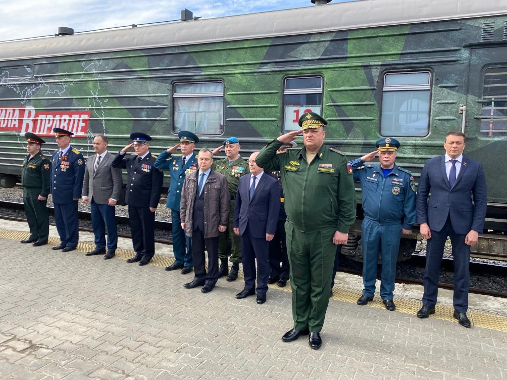 В Йошкар-Олу прибыл агитационный поезд Министерства обороны России «Сила в правде». В марийской столице он сегодня пробудет до 14:30.