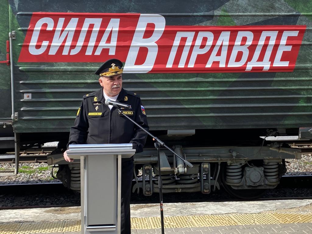 Это передвижная экспозиция, которая рассказывает о Вооружённых силах РФ, о мужестве и героизме российских военных. В вагонах поезда можно увидеть технику, оружие, трофеи российской армии, познакомиться с историей и достижениями армии и флота РФ.