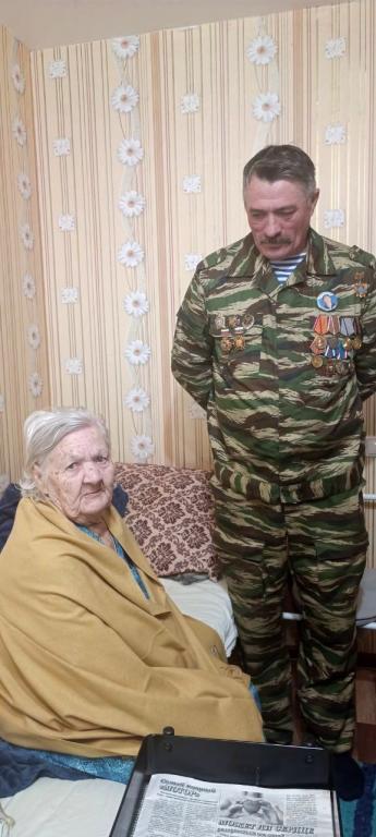 В Медведевском районе ветераны боевых действий Иван Жирнов и Андрей Чемоданов навестили Надежду Фёдоровну Пятину. После школы её юной девчонкой призвали в Красную Армию, а День Победы она встретила в Польше.