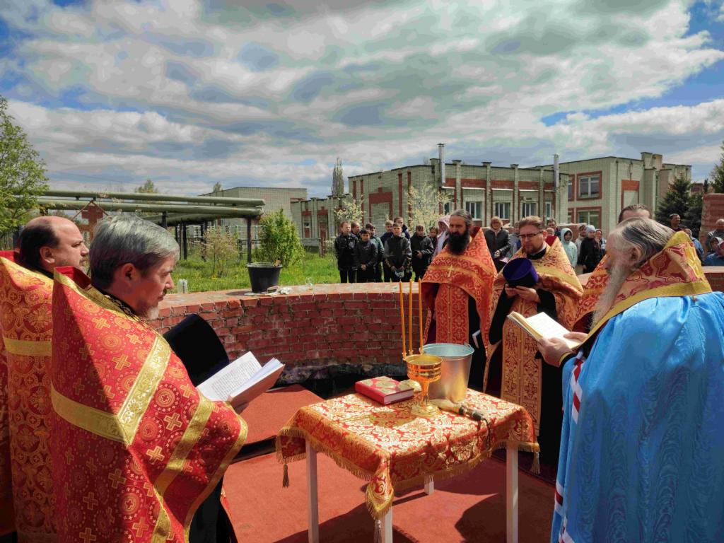 Владыка освятил камень в основание храма кроплением святой водой и помазанием елеем. Зачитав закладную грамоту с указанием имени Святейшего Патриарха и правящего архиерея, а также указанием, какие мощи будут заложены в престол при будущем освящении храма, владыка вложил капсулу в основание алтарной стены.