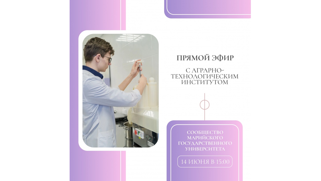 Прямой эфир об Аграрно-технологическом институте пройдёт в эту пятницу, 14 июня в 15:00, в официальной группе МарГУ — https://vk.com/officialmarsu! Подключайтесь, задавайте вопросы и выбирайте место обучения своей мечты!