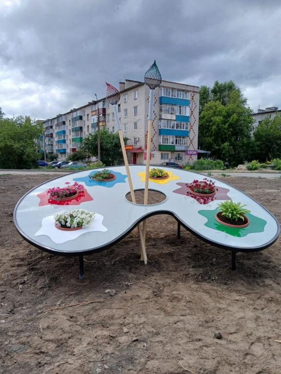 Выкопали цветы, высаженные на арт-объекте «Палитра» на кольцевом перекрёстке на ул. Дружбы. Весной горожане, в том числе дети, волонтёры помогали здесь засеять газон, проводили уборку территории кольца.