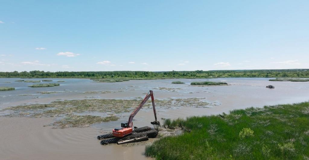 Водоём расчищают с помощью плавучей техники — многофункциональных земснарядов и экскаваторов-амфибий. Спецоборудование поднимает со дна иловые наносы, которые складируют на картах намыва для последующего осушения. Также акваторию избавляют от зарослей камыша и остатков древесины. В результате восстановления водного объекта экологические условия проживания улучшатся для 1100 жителей республики.