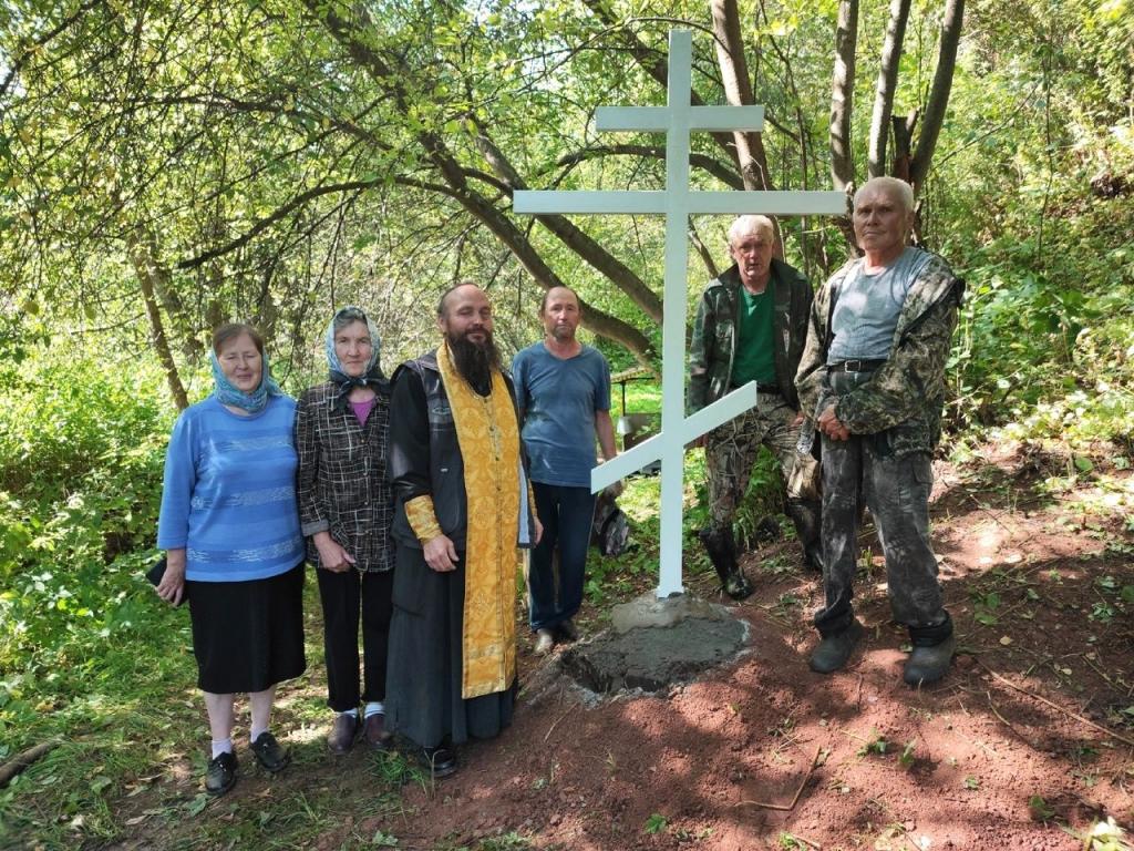 В минувшую субботу в деревне Сенда Мари-Турекского района у святого источника святых Царственных страстотерпцев настоятель Покровского храма села Мари-Билямор иерей Иоаким Алексеев совершил водосвятный молебен. После молебна по благословению епископа Волжского и Сернурского Феофана были освящены и установлены поклонные кресты на источниках в честь святых Царственных страстотерпцев и преподобного Сергия Радонежского.
