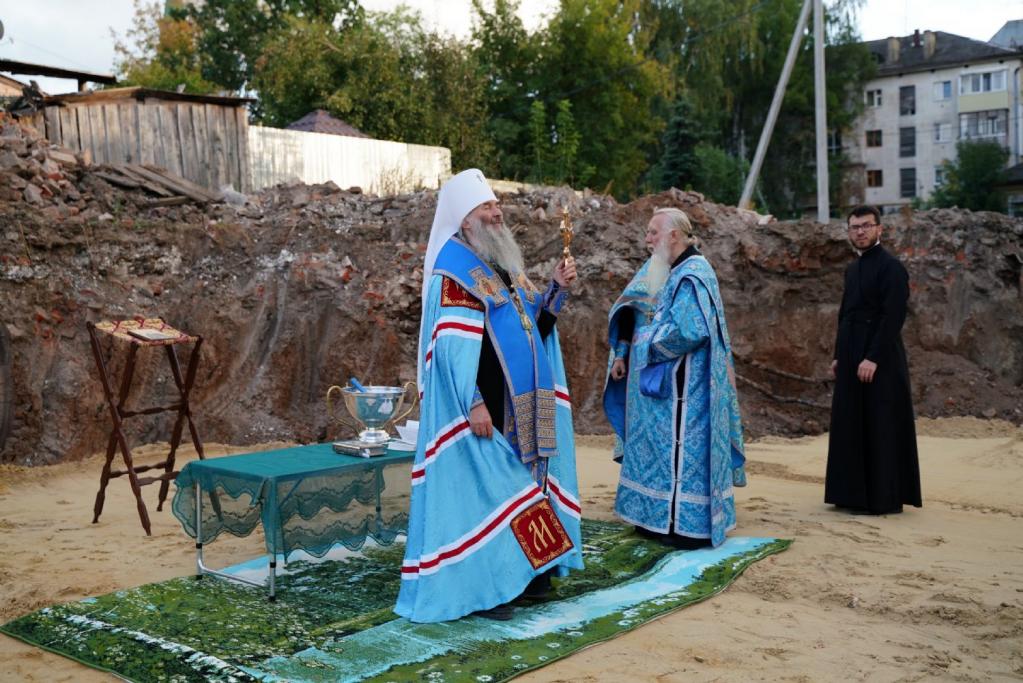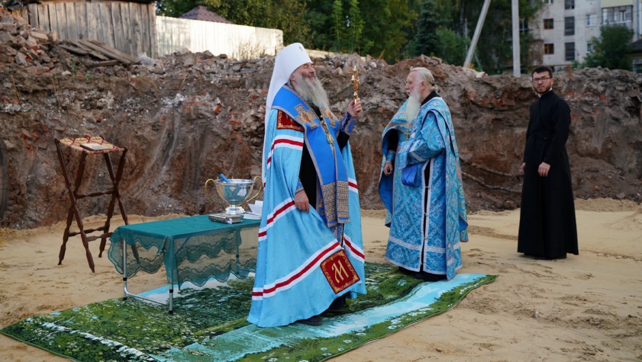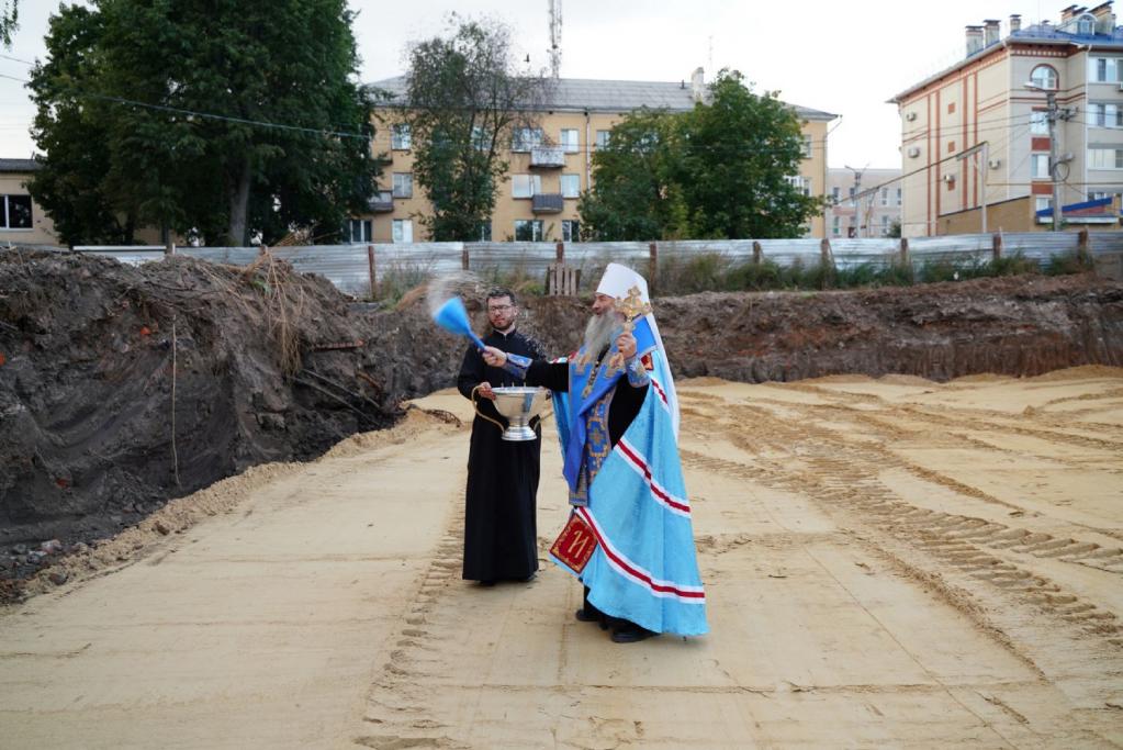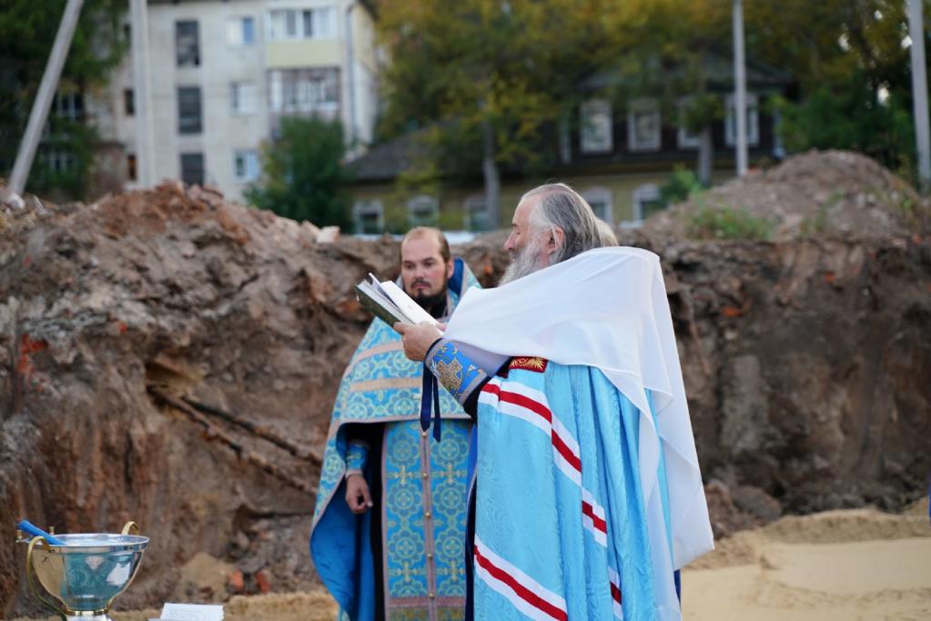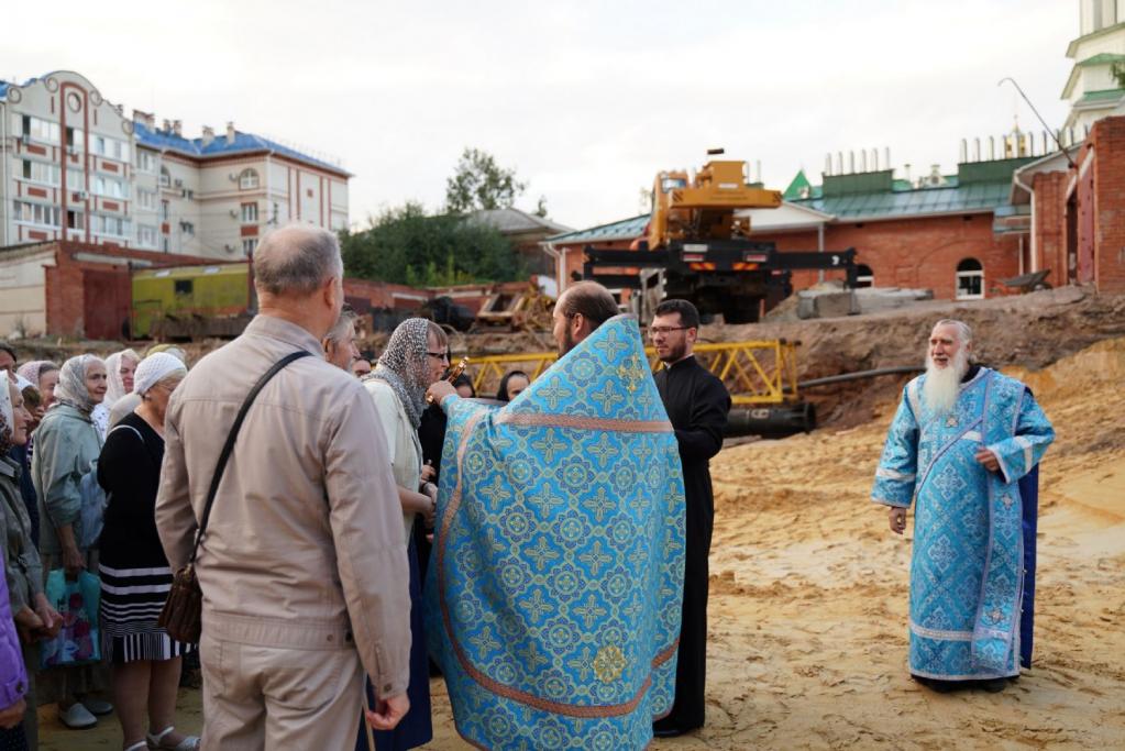 На месте строительства митрополит Йошкар-Олинский и Марийский Иоанн отслужил молебен и окропил территорию стройки святой водой. Архипастырю сослужили клирик Благовещенского кафедрального собора иерей Александр Староверов и протодиакон Михаил Козловский.
