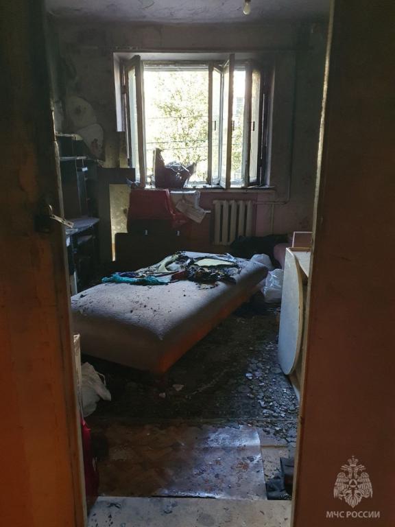 В результате возгорания комната повреждена, сгорела часть имущества. Причина пожара устанавливается.