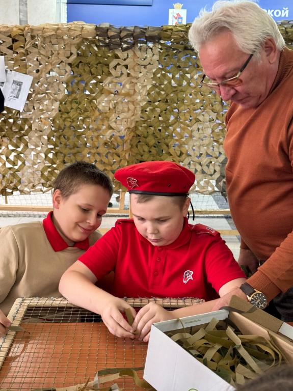 В здании мэрии ребят учили плести маскировочные сети и нашлемники для бойцов СВО. Школьники с большим желанием включились в работу и потрудились на славу.