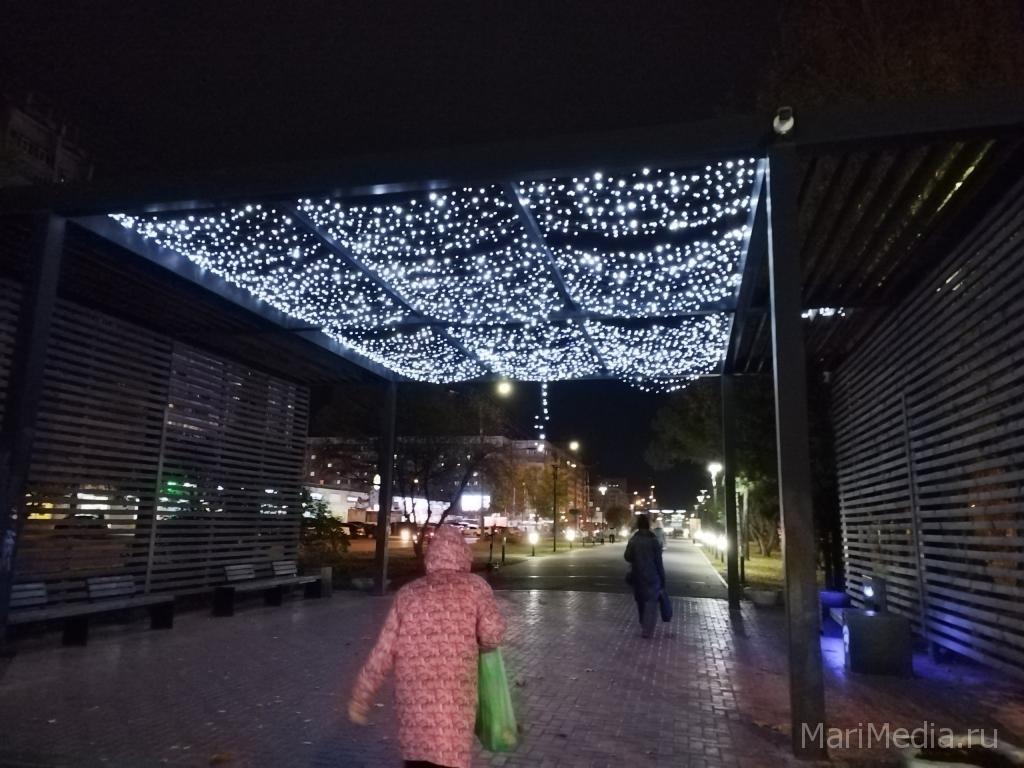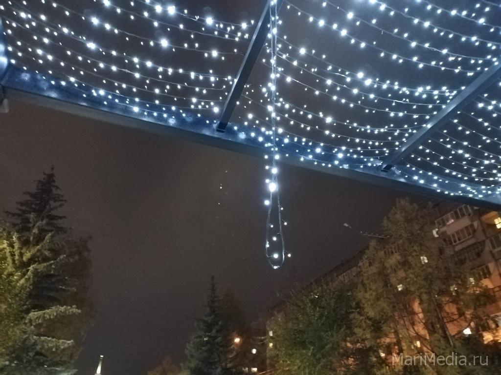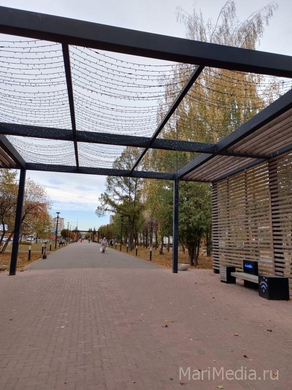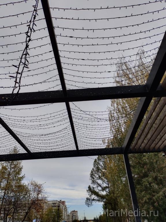 Жители Йошкар-Олы заметили, что на одной из пергол на бульваре Чавайна в «Сомбатхее» сорвало гирлянду. Светодиодное оформление свисает с перекрытия.