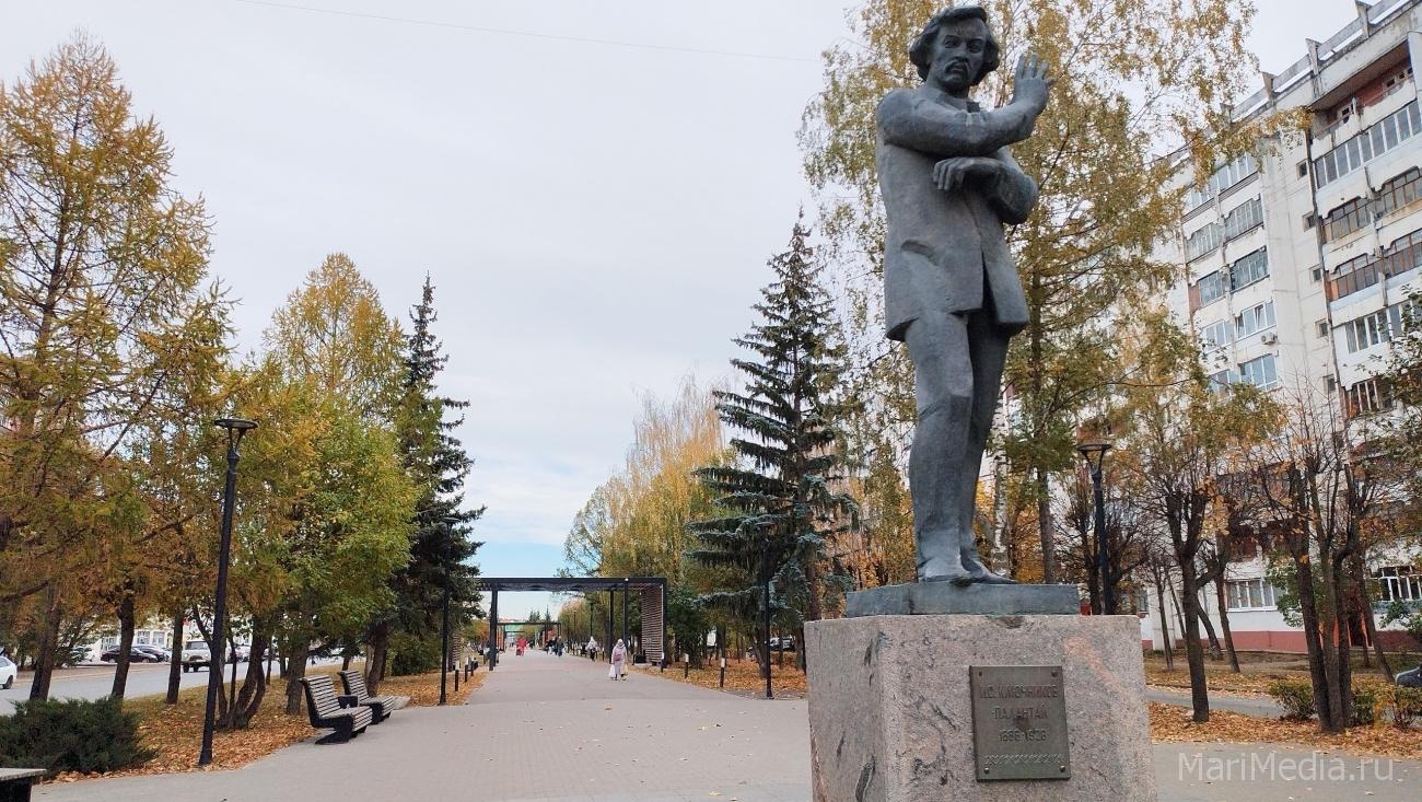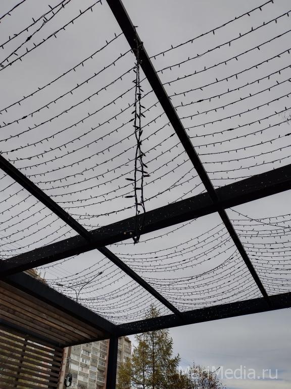 Свисающая светодиодная нить находится на перголе за памятником Ключникову-Палантаю.