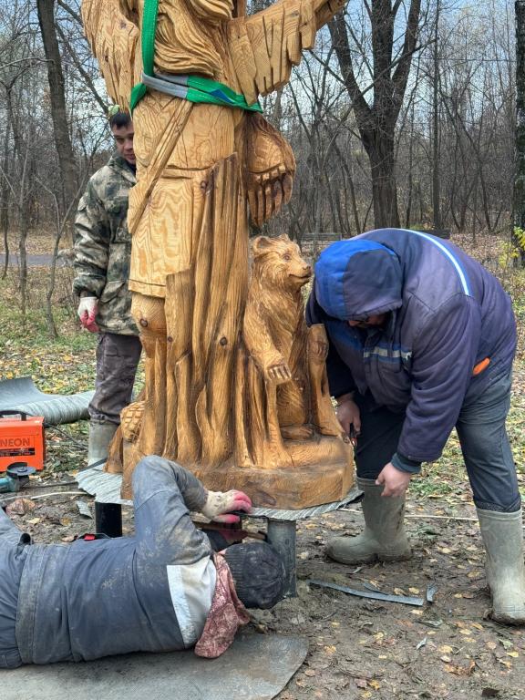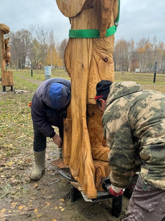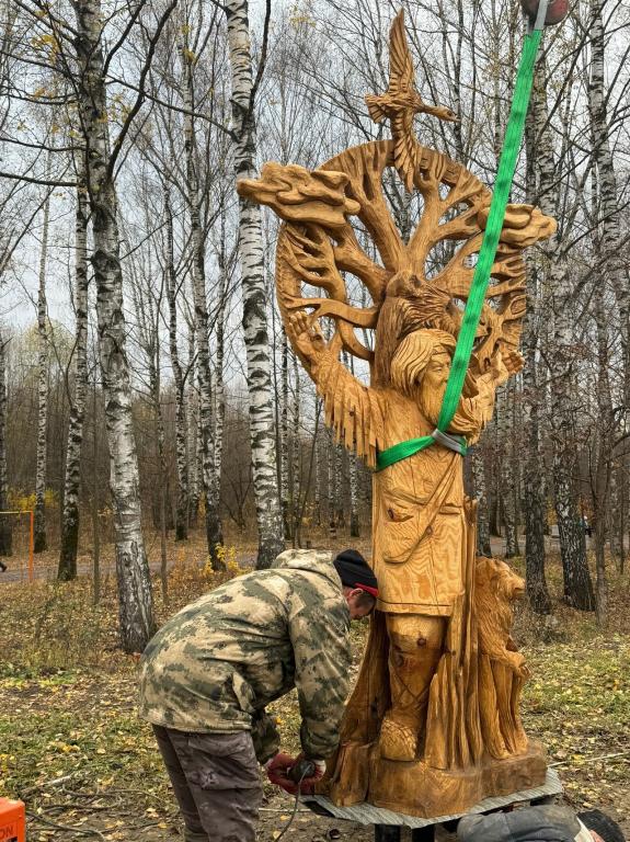 В Марий парке в Йошкар-Оле сегодня начали устанавливать деревянные фигуры, которые были созданы мастерами во время летнего фестиваля «Легенды народа мари».