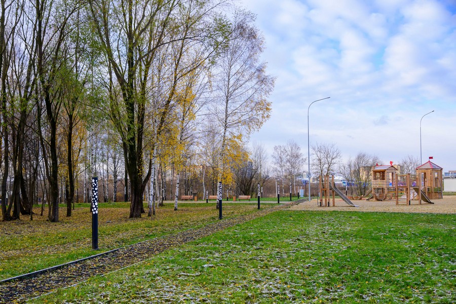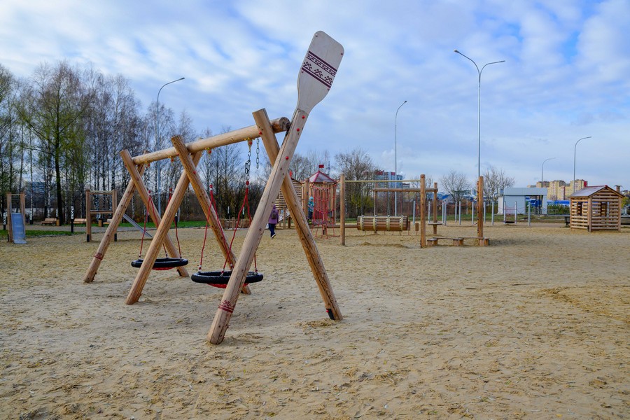 Новая территория включает зону для отдыха, танцплощадку со сценой, площадки для творчества, детскую игровую зону. Здесь проложены тротуары и пешеходные дорожки, установлены скамьи, качели и другие малые архитектурные формы.