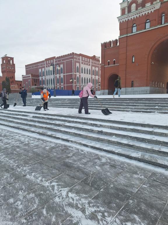В Йошкар-Оле производится не только уборка улиц от снега и наледи, но и обработка противогололёдными материалами.