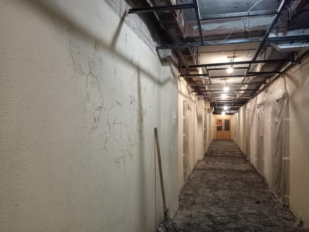 В настоящее время на цокольном этаже ремонтируют мужской туалет. Здесь уже завершили демонтаж, впереди — укладка плитки, установка новой сантехники и т.д.