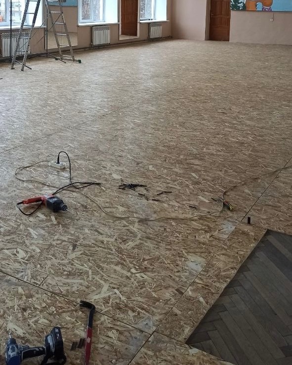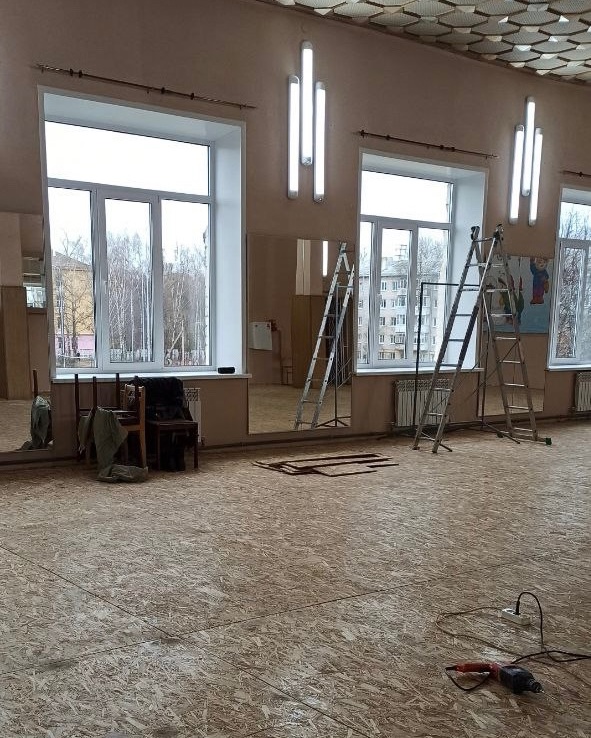 Сейчас в ДК обновляют напольное покрытие танцевального зала. Работники стараются сделать всё оперативно и в срок, всё-таки скоро уже начнутся новогодние представления.