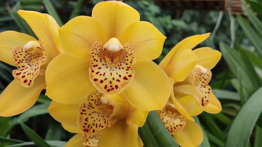 В оранжерее Ботанического сада Йошкар-Олы зацвела жёлтая орхидея — гибрид цимбидиума.
