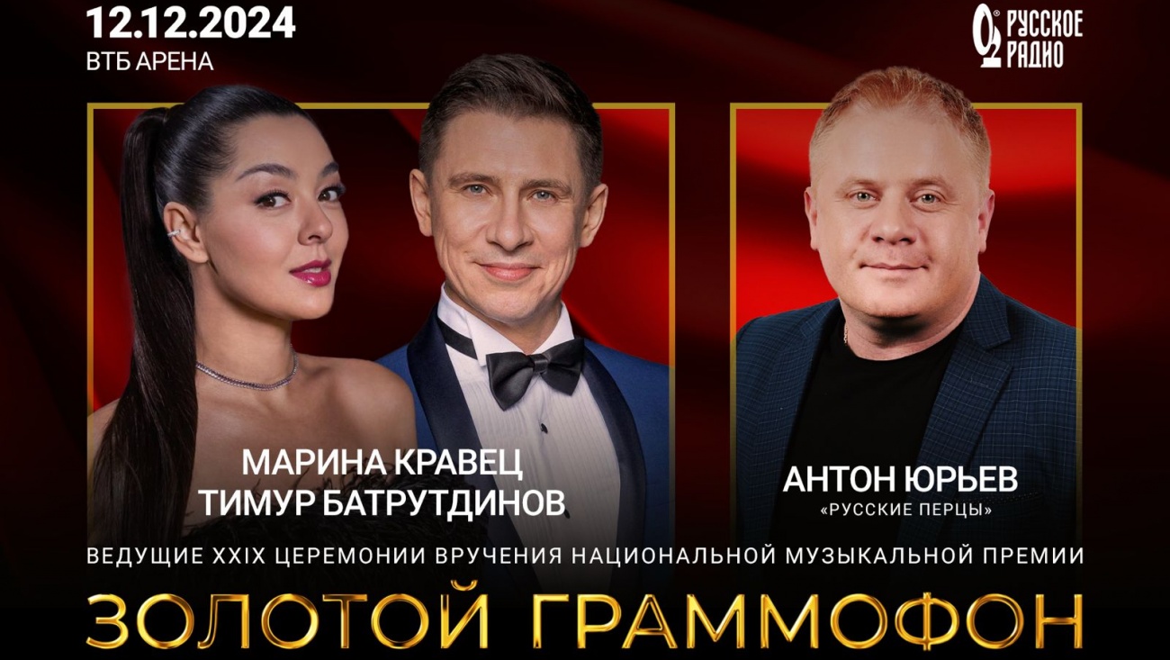 12 декабря 2024 года на сцене ВТБ Арены состоится главное музыкальное шоу года — XXIX Церемония вручения национальной музыкальной Премии «Золотой Граммофон». Шоу-бизнес и его поклонники замерли в предвкушении: кто же в этом году станет ведущими это легендарной церемонии. И вот, наконец, «Русское Радио» раскрыло секрет. На сцену выйдут яркие, невероятные харизматичные Тимур Батрудинов и Марина Кравец. И это еще не всё!