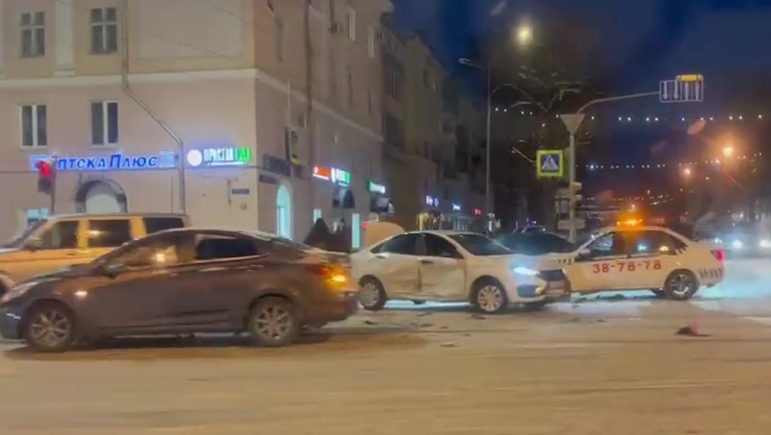 На перекрёстке Ленинского проспекта и проспекта Гагарина столкнулись две иномарки. ДТП случилось сегодня около 16 часов.