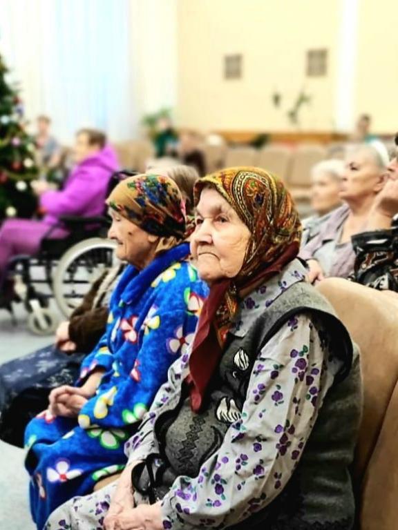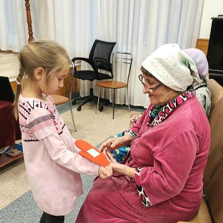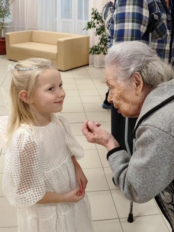 Встреча детей со старшим поколением была полна лёгкости, радости и тепла. Глаза бабушек и дедушек светились от счастья, а дети дарили им свои подарки с такой искренней любовью, словно это были их собственные родные.
