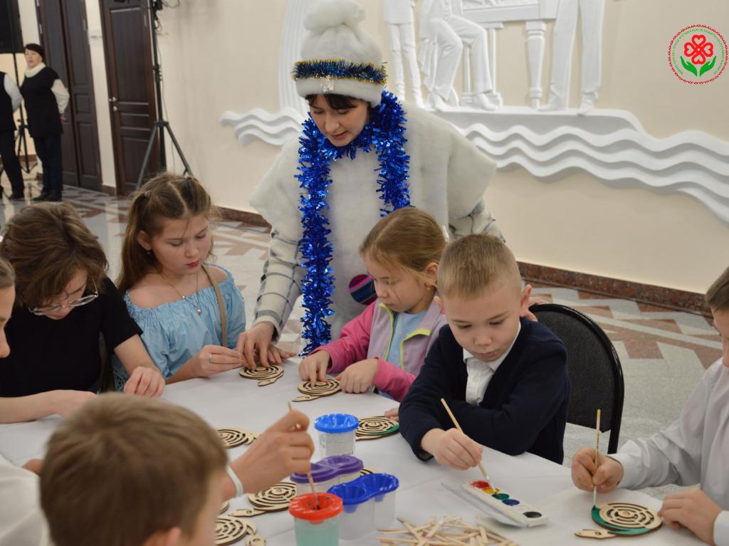 В фойе филармонии детей ждали увлекательные мастер-классы по изготовлению новогодних игрушек, а также захватывающая программа со сказочными героями, полная игр и танцев.