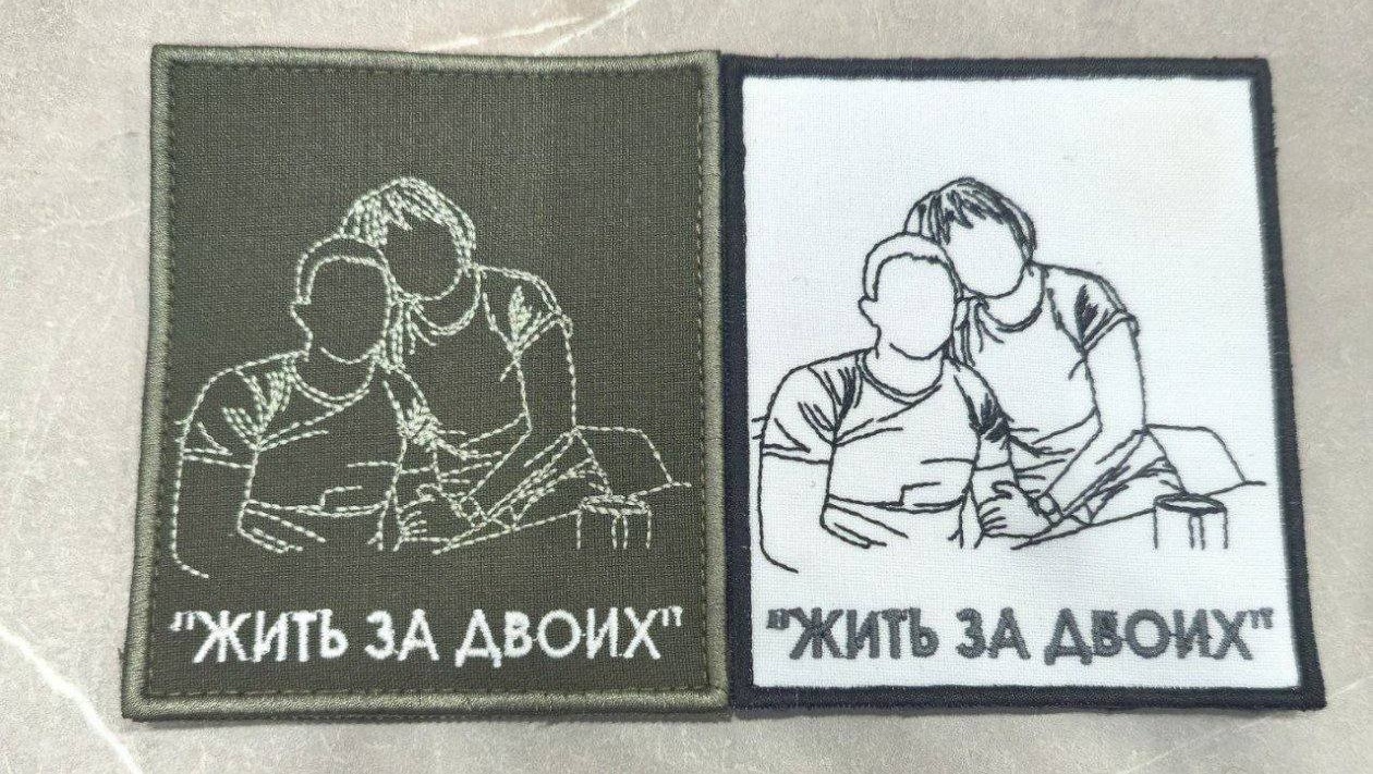 Полина вместе с единомышленниками решила создать уникальные памятные шевроны с надписью «Жить за двоих». На шевронах изображены силуэты двух близких людей: мужа и жены или матери и сына.