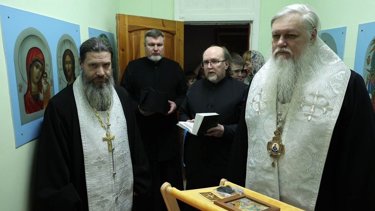Епископ освятил новую молельную комнату, расположенную в здании центра. Также архипастырь окропил святой водой комнату для занятий кулинарией, столовую и кухню.