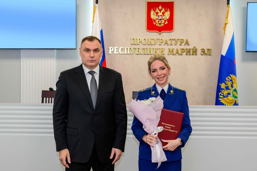 - Благодарность главы РМЭ объявлена старшему помощнику прокурора республики по взаимодействию со СМИ и общественностью Дарье Гомзиной, старшему прокурору отдела по надзору за уголовно-процессуальной и оперативно-розыскной деятельностью прокуратуры Марий Эл Марии Платовой.