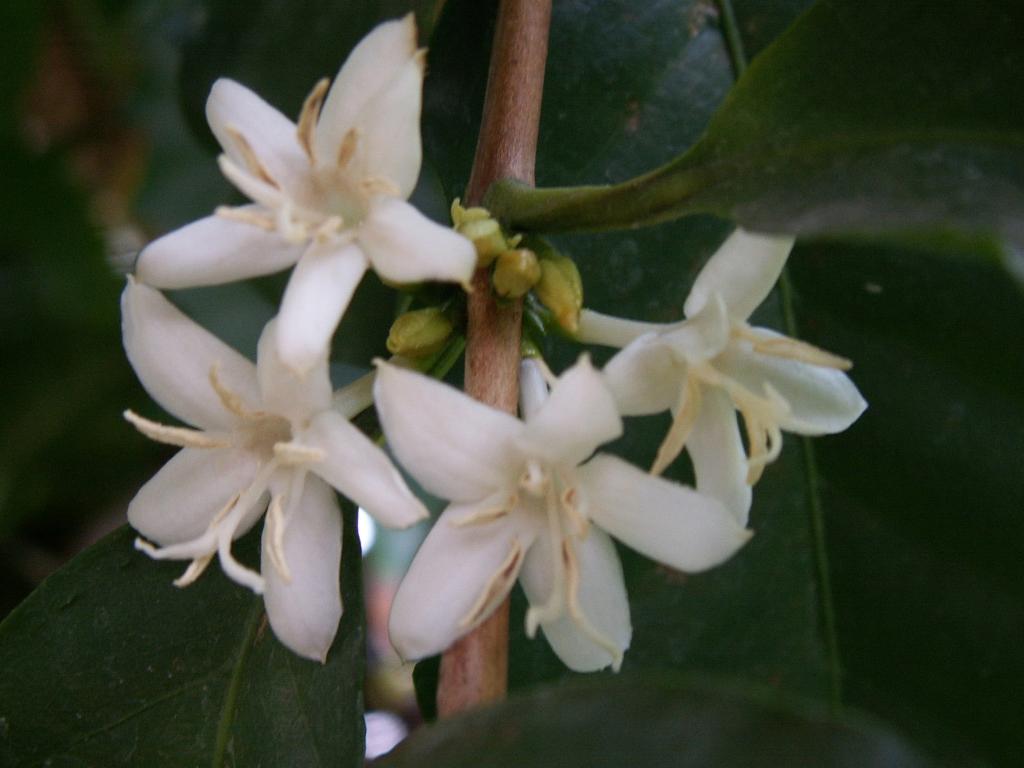 Растение цветёт дважды в год, а затем плодоносит. Цветки белые мелкие, но очень ароматные, напоминают запах жасмина.