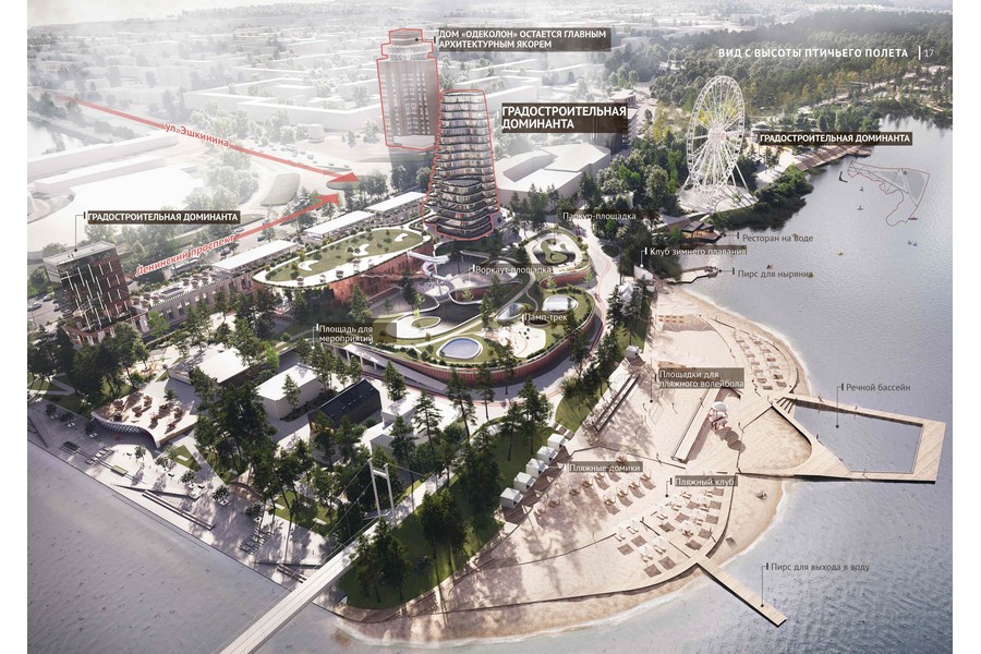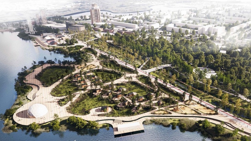 Общая площадь «Города-леса» составит 78 га. Будет благоустроено 3 км набережной, создано 10 км пешеходных направлений и 4,5 км велосипедных дорожек.