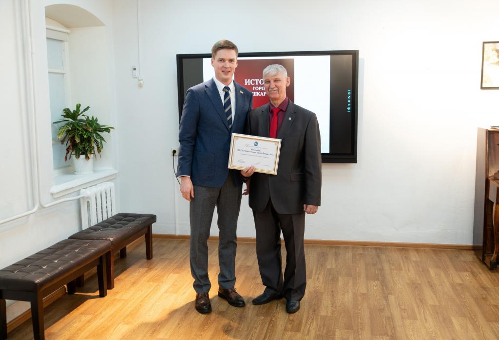 Лев Покровский вручил благодарственные письма Собрания депутатов городского округа коллективам МарНИИЯЛИ, кафедры отечественной истории МарГУ и Музея истории города Йошкар-Олы.