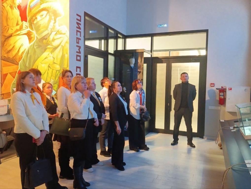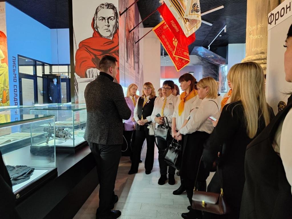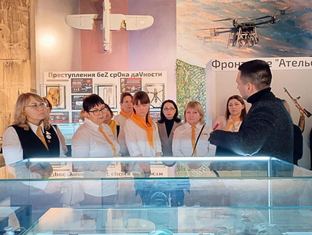Заведующий центром Евгений Грознов провёл для гостей экскурсию по экспозиции, посвящённой Первой мировой и Великой Отечественной войнам, а также специальной военной операции. Особое внимание было обращено на героев, защищавших страну в разные исторические эпохи.