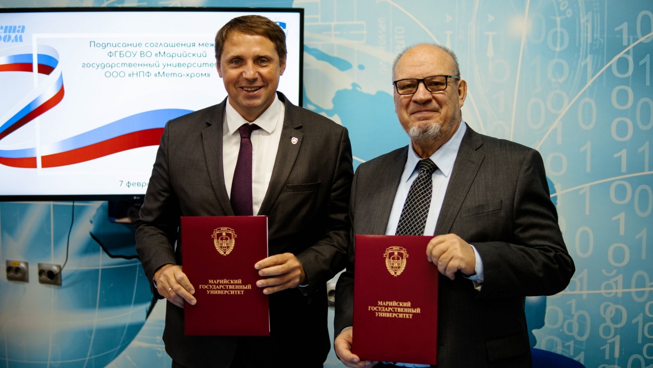 В рамках развития научно-образовательного сотрудничества и укрепления связей между академической средой и бизнесом Марийский государственный университет (МарГУ) и ООО «Научно-производственная фирма «Мета-хром» подписали соглашение о сотрудничестве. Это событие стало важным шагом в объединении усилий для реализации инновационных проектов, проведения совместных исследований и подготовки высококвалифицированных кадров.