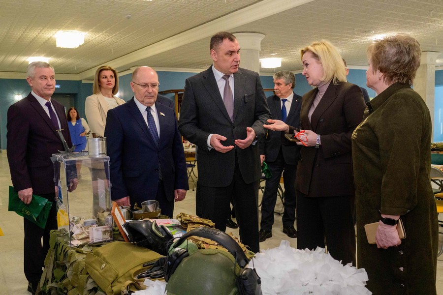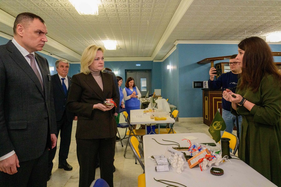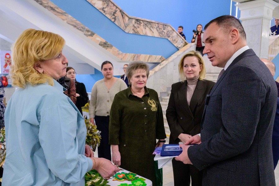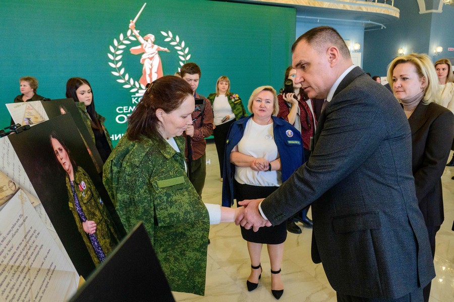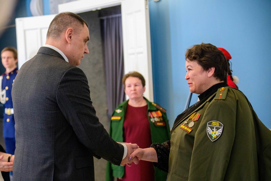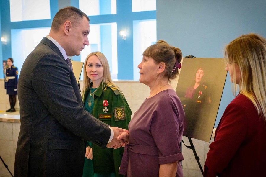 Перед началом торжества Юрий Зайцев вместе с Юлией Белеховой осмотрели мастер-классы по плетению нашлемников, изготовлению браслетов выживания и валяльных изделий. Также они ознакомились с фотовыставкой «Жена Героя. Мать Героя» с 34 портретами погибших участников специальной военной операции.