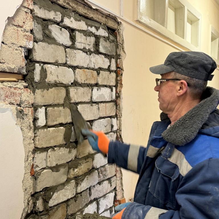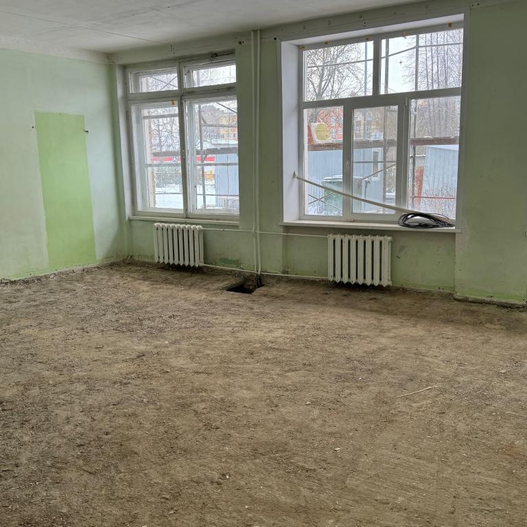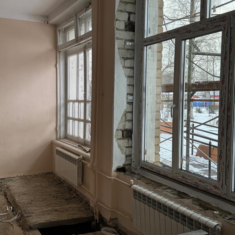 Сейчас на здании утепляют фасад, меняют окна на пластиковые. В помещениях начались демонтажные работы.