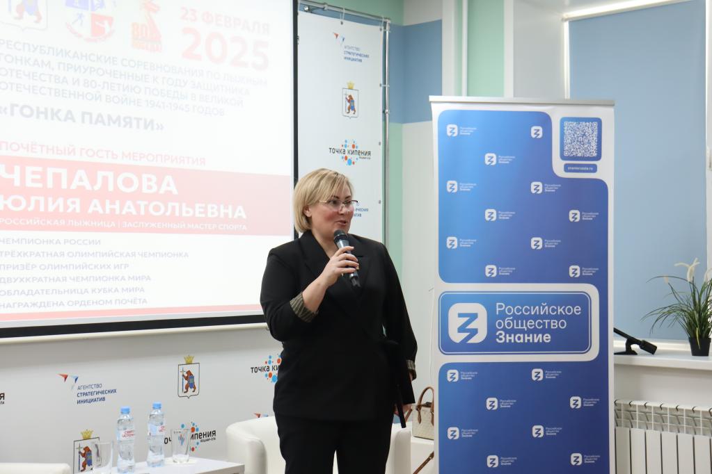 Спортсменка является лектором Российского общества «Знание». На площадке «Точки кипения» в рамках лектория она встретилась со школьниками, студентами и ветеранами спорта и рассказала о себе и общественной деятельности, которой занимается.